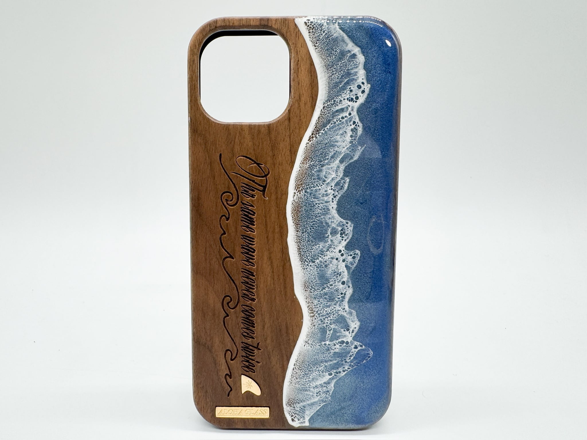 天然木製なのはもちろんのこと波のレジン加工も全て手作業で行いALOHA GLASSしか作れない、絶対に誰とも被ることのないあなただけのケースです。