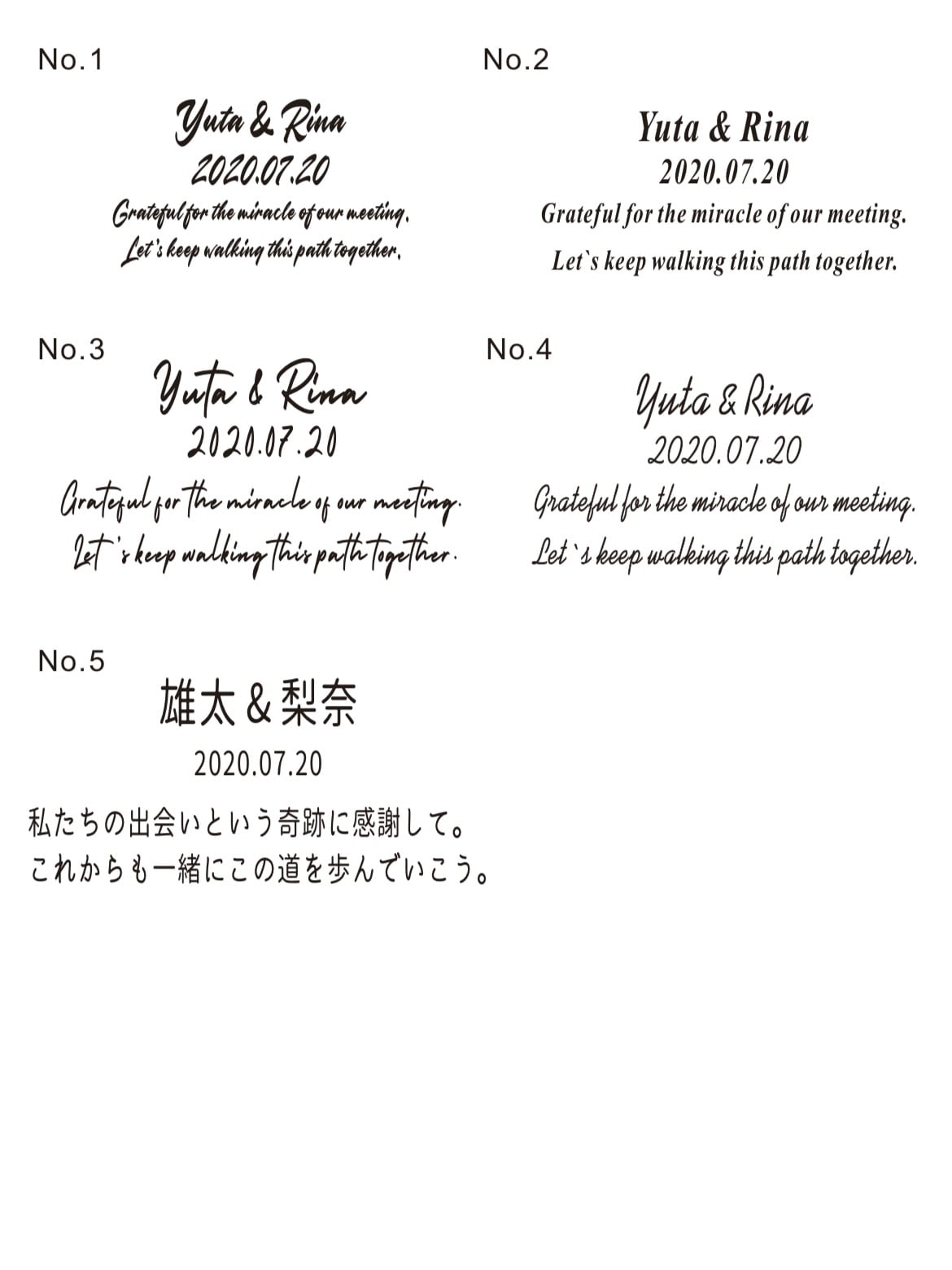 ・お好きなフォント(No,1〜No,5)をご選択ください。