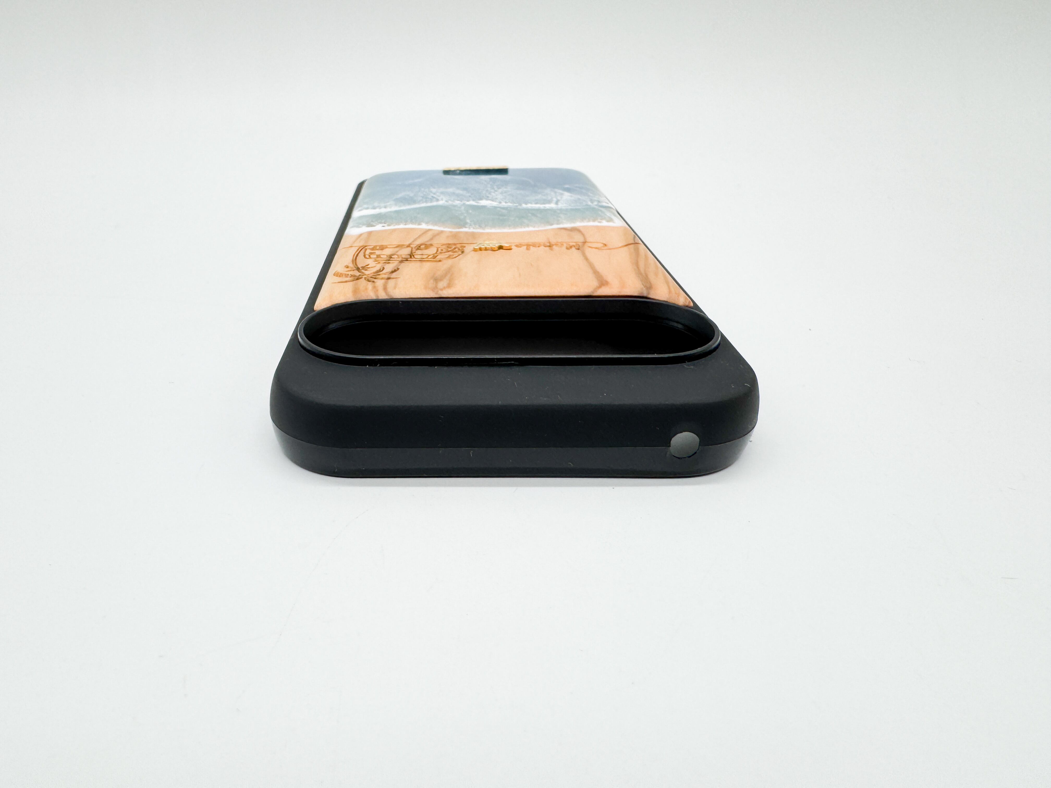 天然木製なのはもちろんのこと波のレジン加工も全て手作業で行うため同じ物が2度と生まれることはなく絶対に誰とも被ることのないあなただけのケースです。