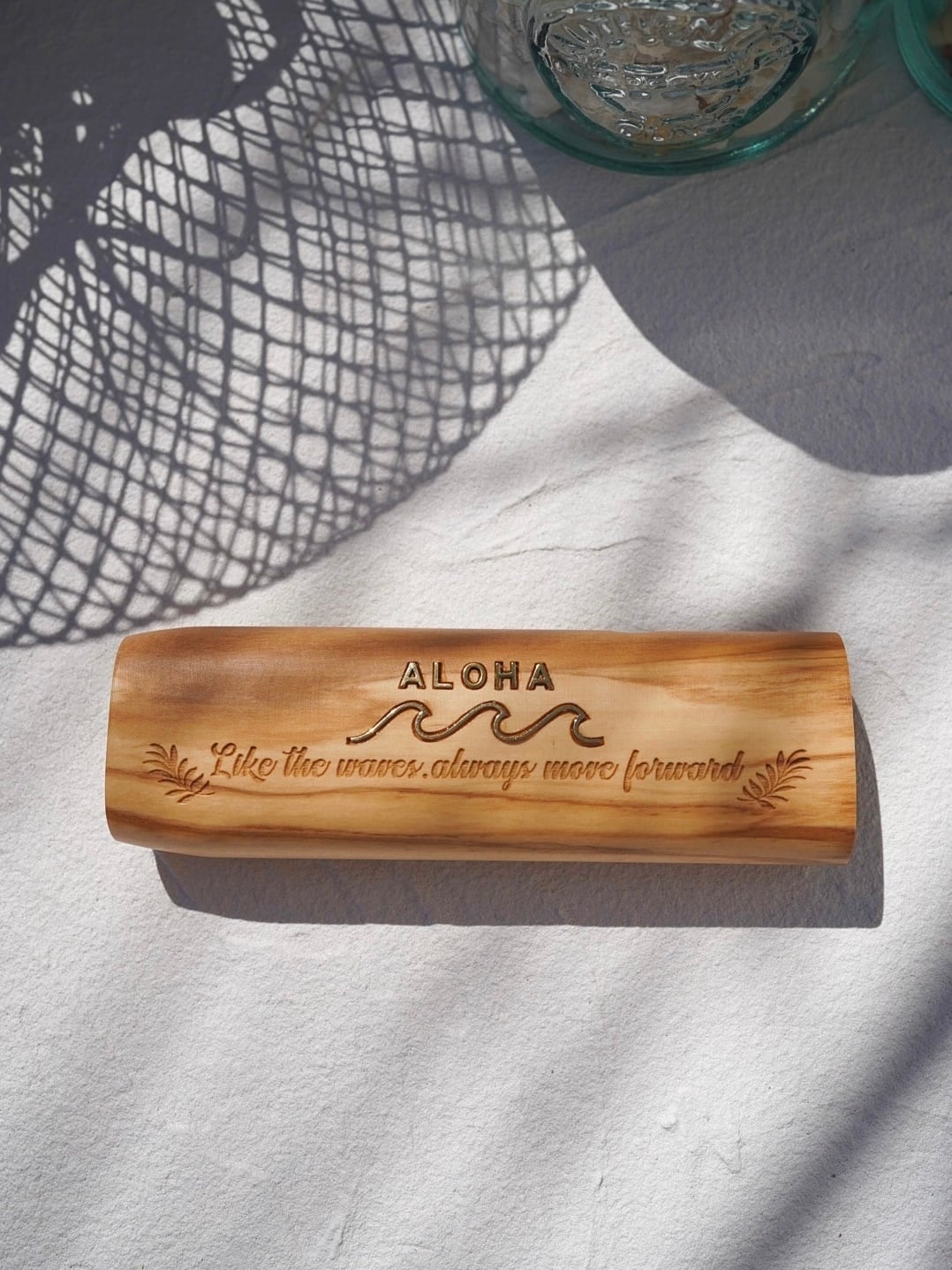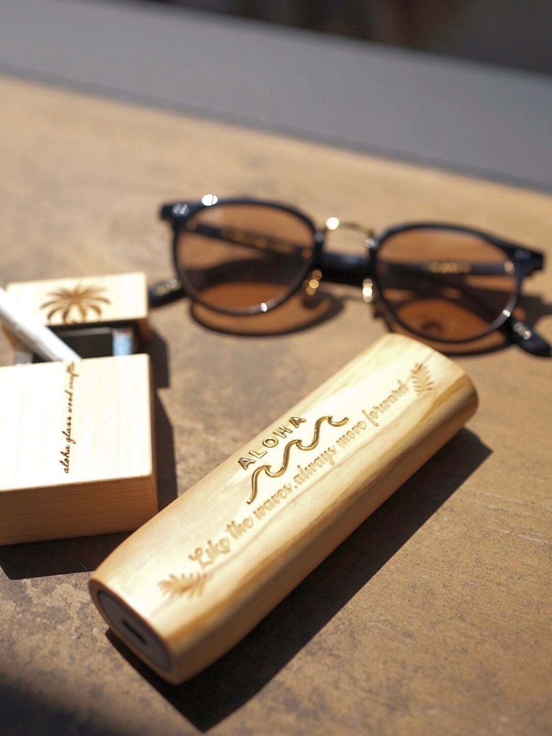 さらに裏面には、ALOHA GLASSのオリジナルブランドロゴプレートを添え、上質な存在感を演出します。
