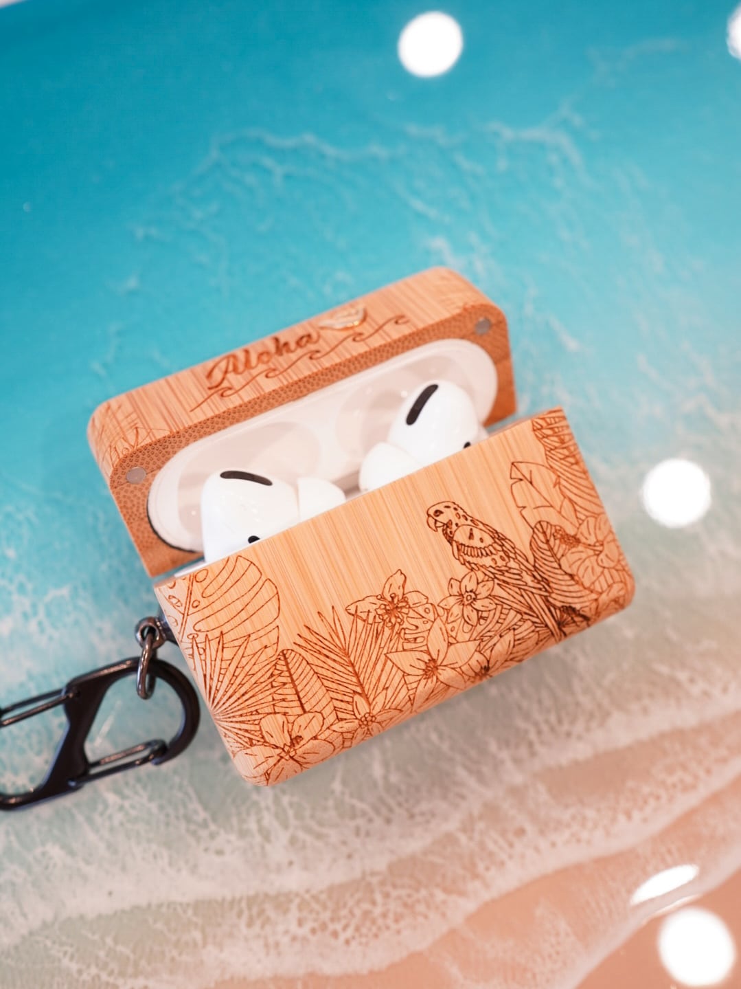 レーザーでデザインを彫ったAirPodsPro,第3世代のWOODケースになります。