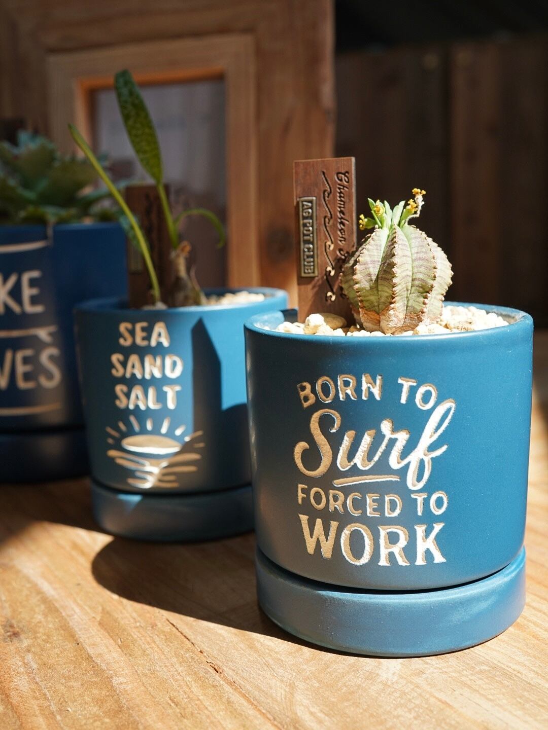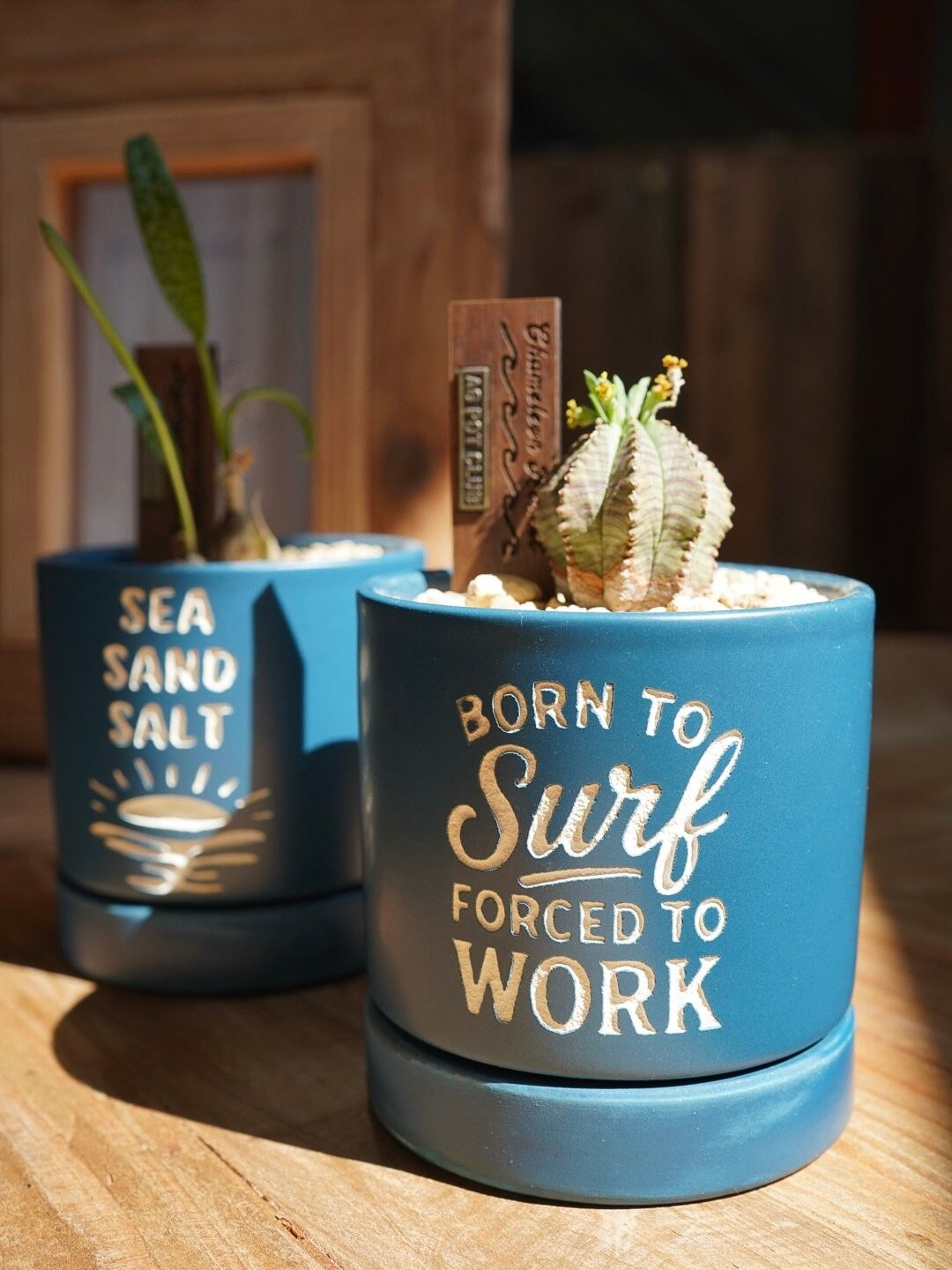 サンドブラストで1点1点丁寧にデザインを彫った鉢植えになります。