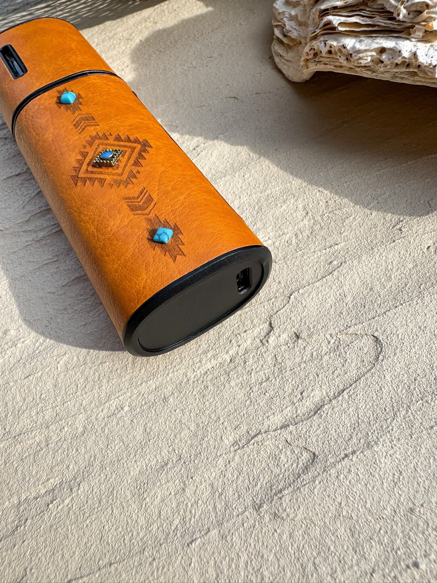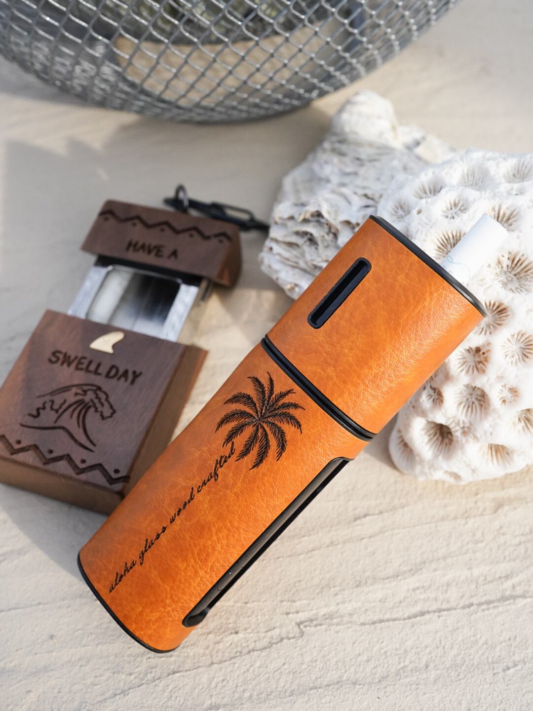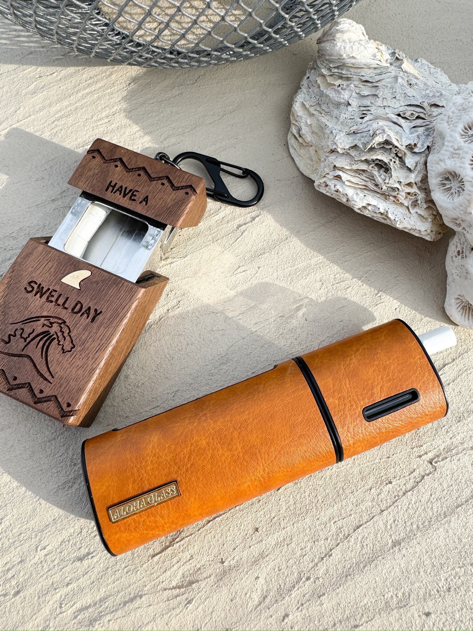 ALOHA GLASSオリジナルデザインを、レーザー加工で丁寧に刻み込んだiQOS lil HYBRID 3.0専用レザーケース。裏面にはブランドオリジナルのロゴプレートをあしらい、細部までこだわった完全オリジナル仕様です。ケースを装着したまま使用・充電が可能です。