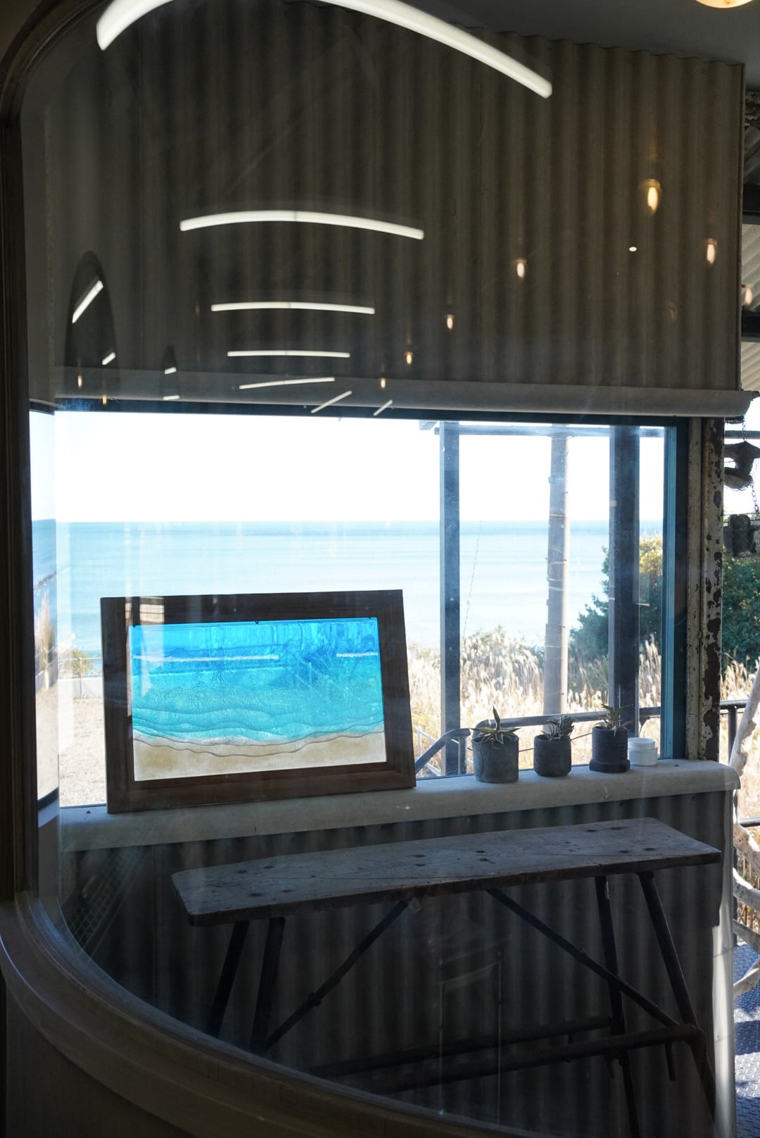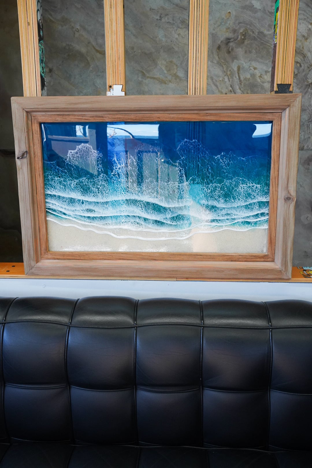ALOHA GLASSの波レジンアートと、n.beige worksのオールハンドクラフトフレーム。