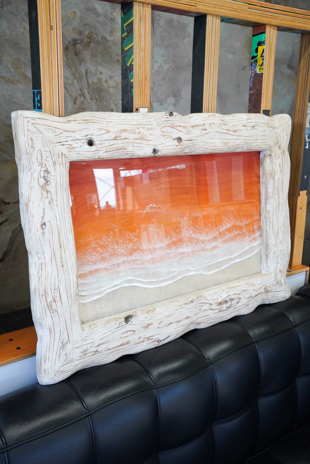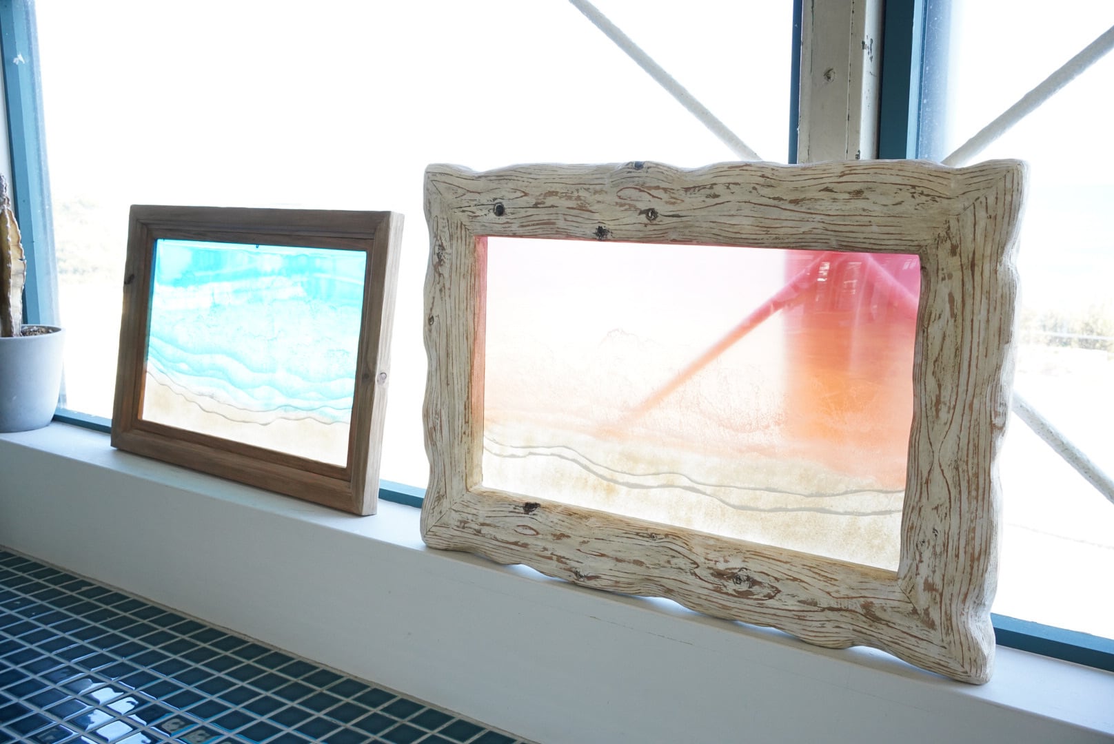 ALOHA GLASSの波レジンアートと、n.beige worksのオールハンドクラフトフレーム。