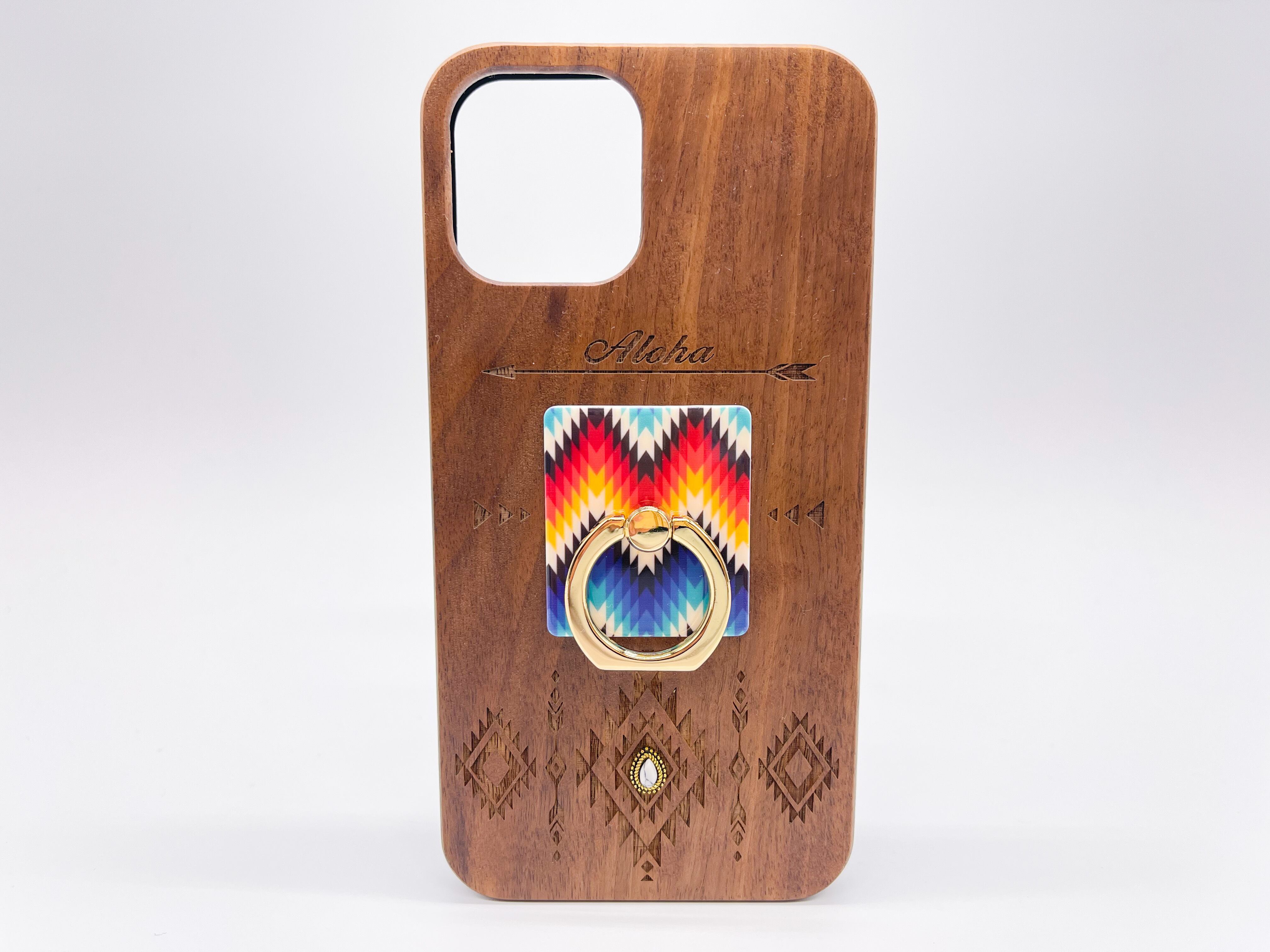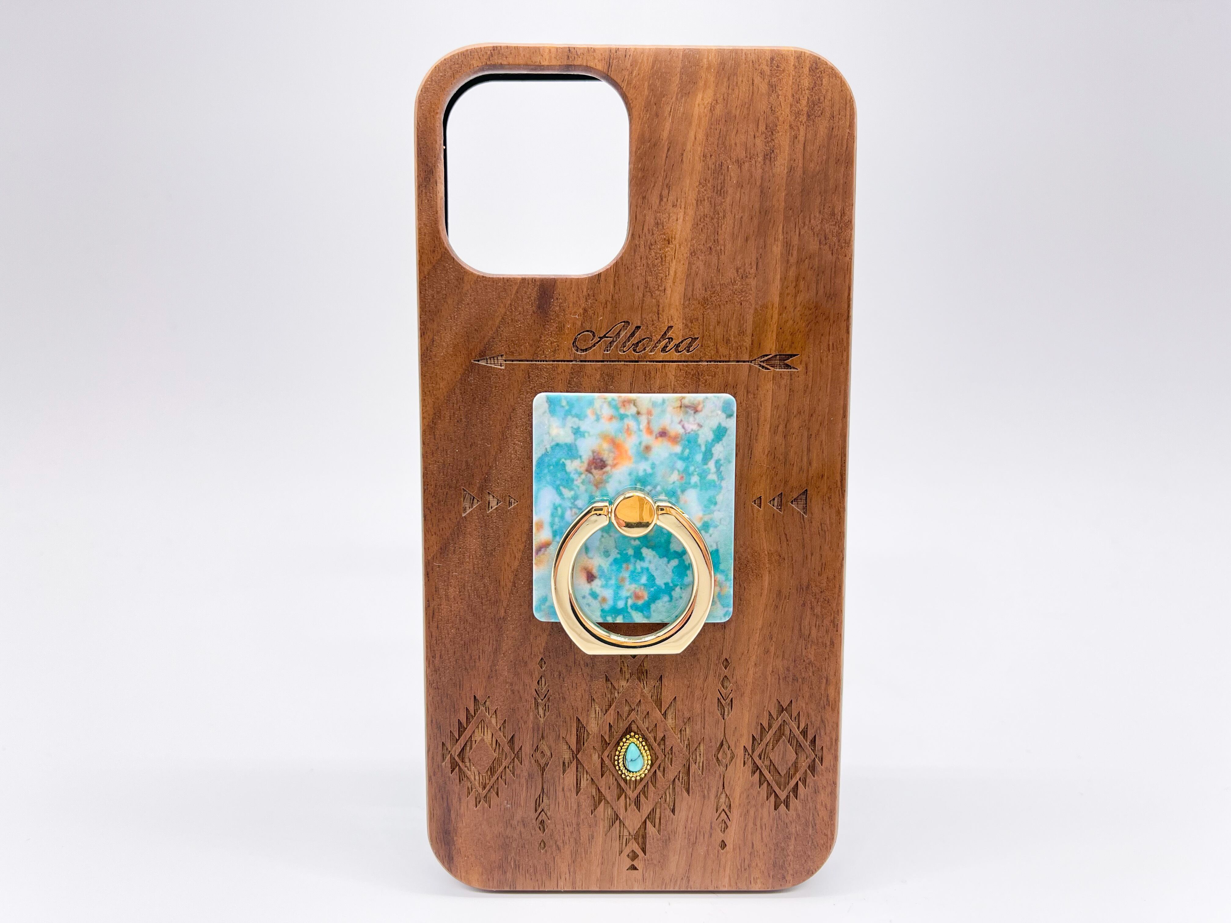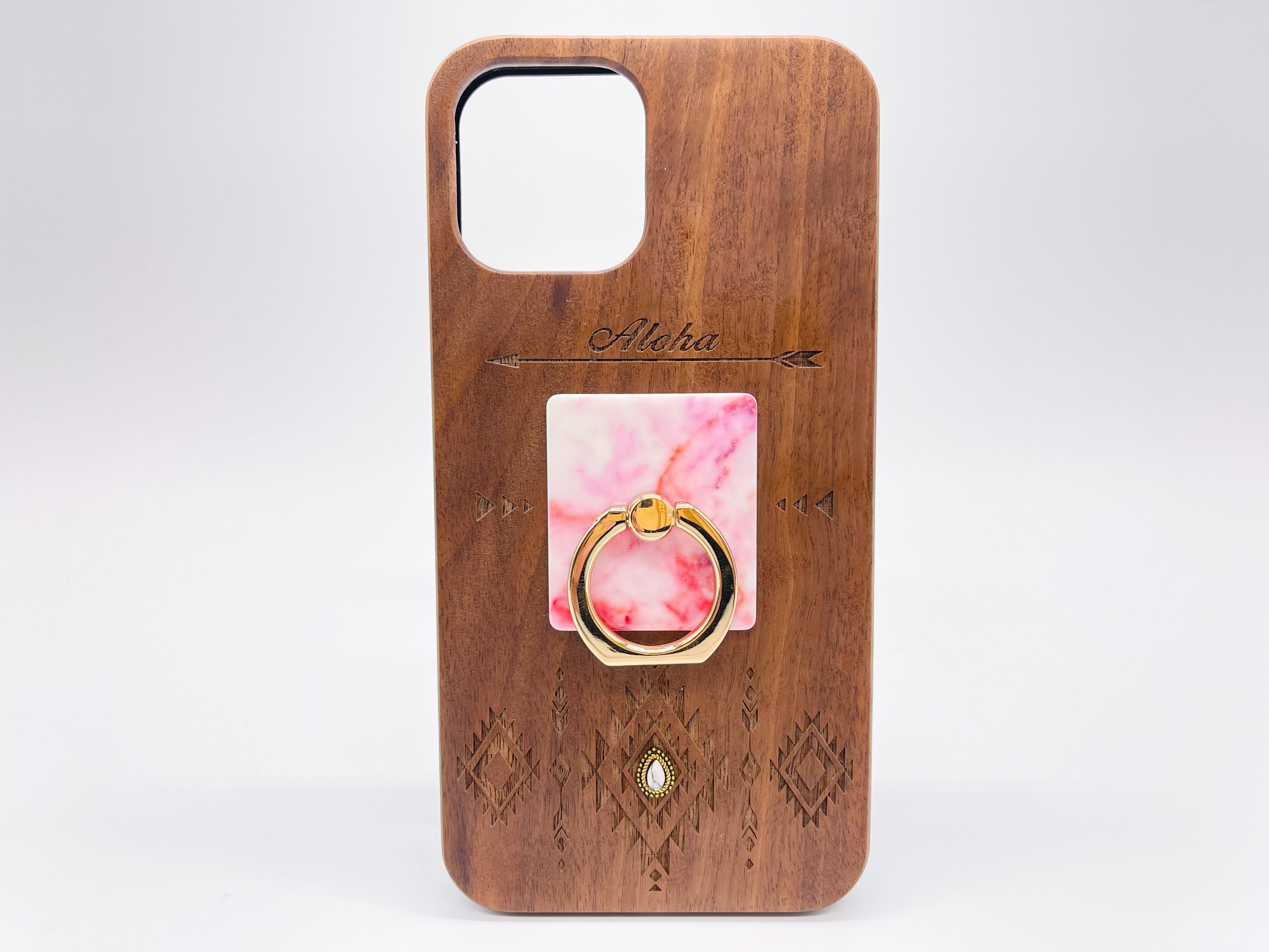 レーザーでデザインを彫ったWOOD+ブラックラバー(天然木+ブラックラバー)のケースになります。