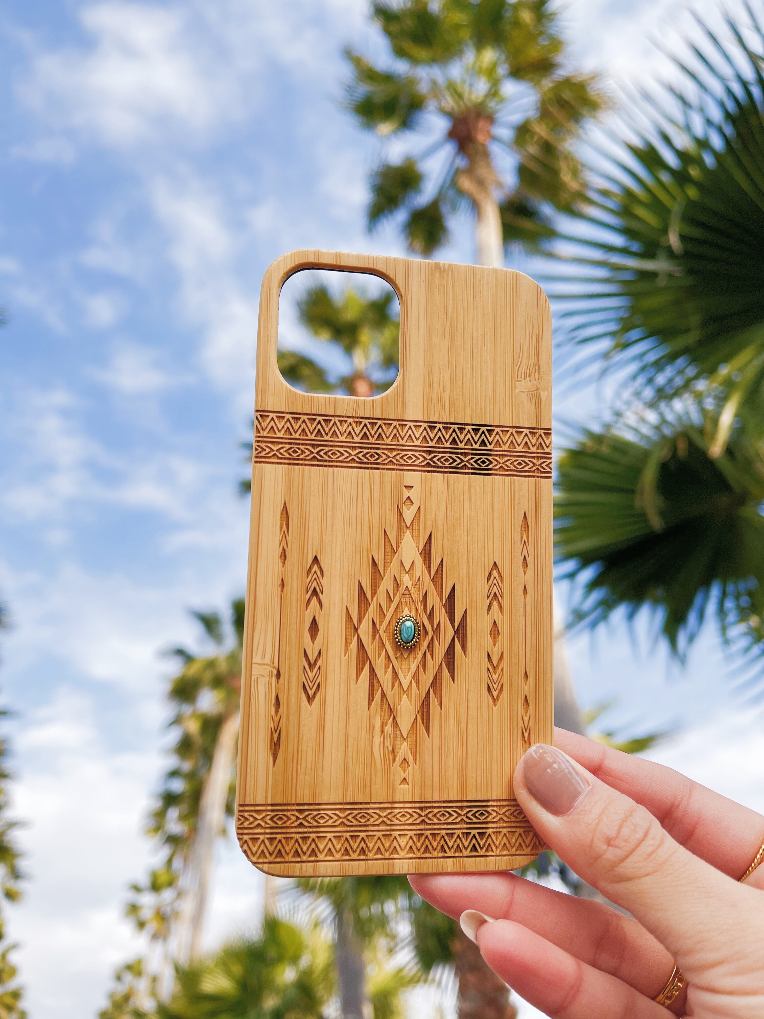 レーザーでデザインを彫ったWOOD+ブラックラバー(天然木+ブラックラバー)のケースになります。