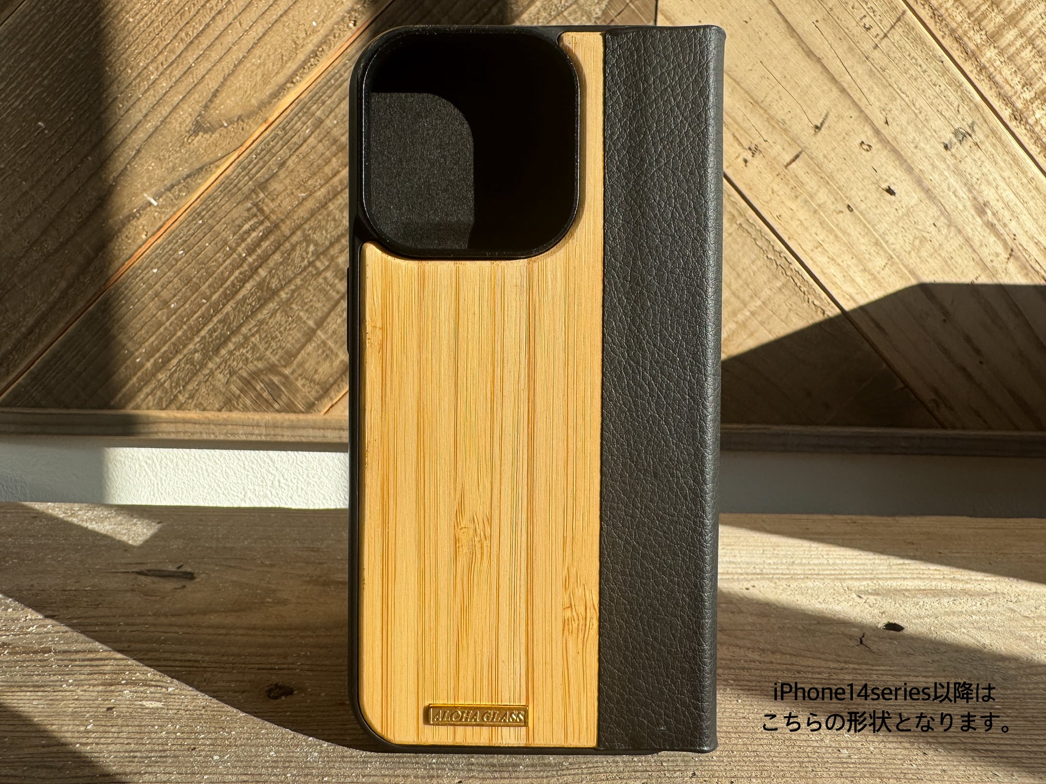 レザーと天然木(bamboo,walnut)のハイブリッドケースです。