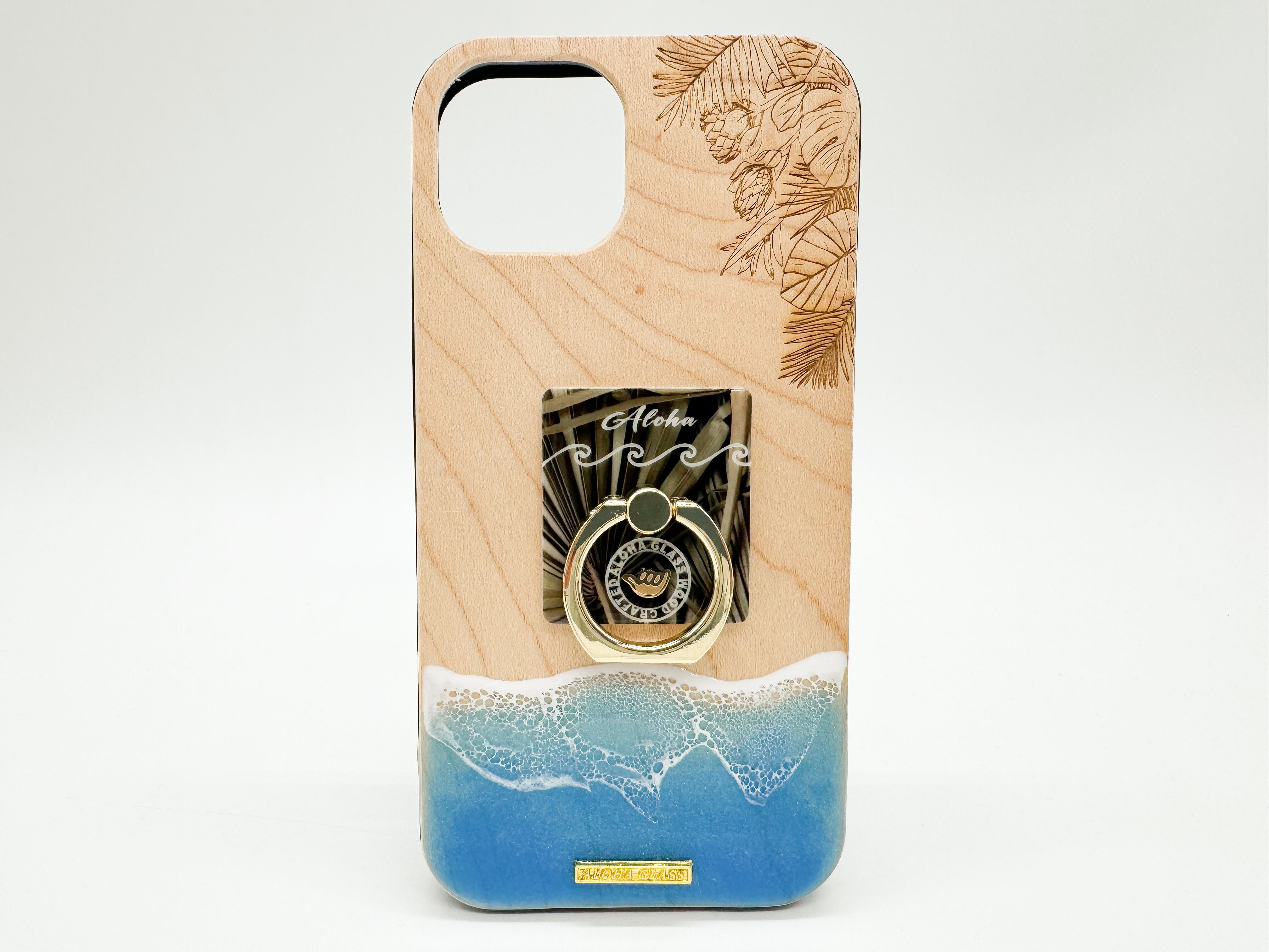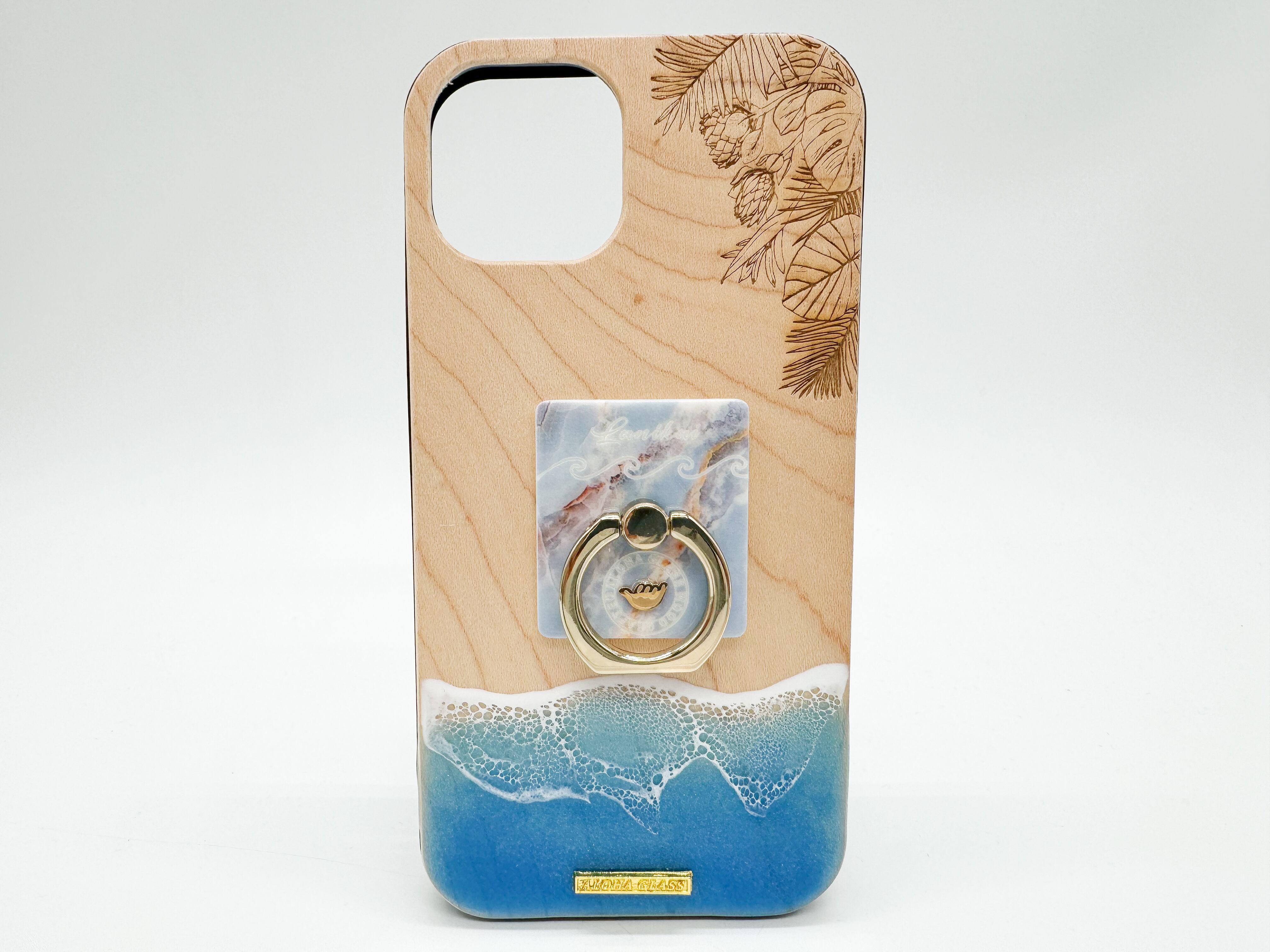 天然木製なのはもちろんのこと波のレジン加工も全て手作業で行い、オリジナルのリングを付けることでALOHA GLASSしか作れない、絶対に誰とも被ることのないあなただけのケースです。
