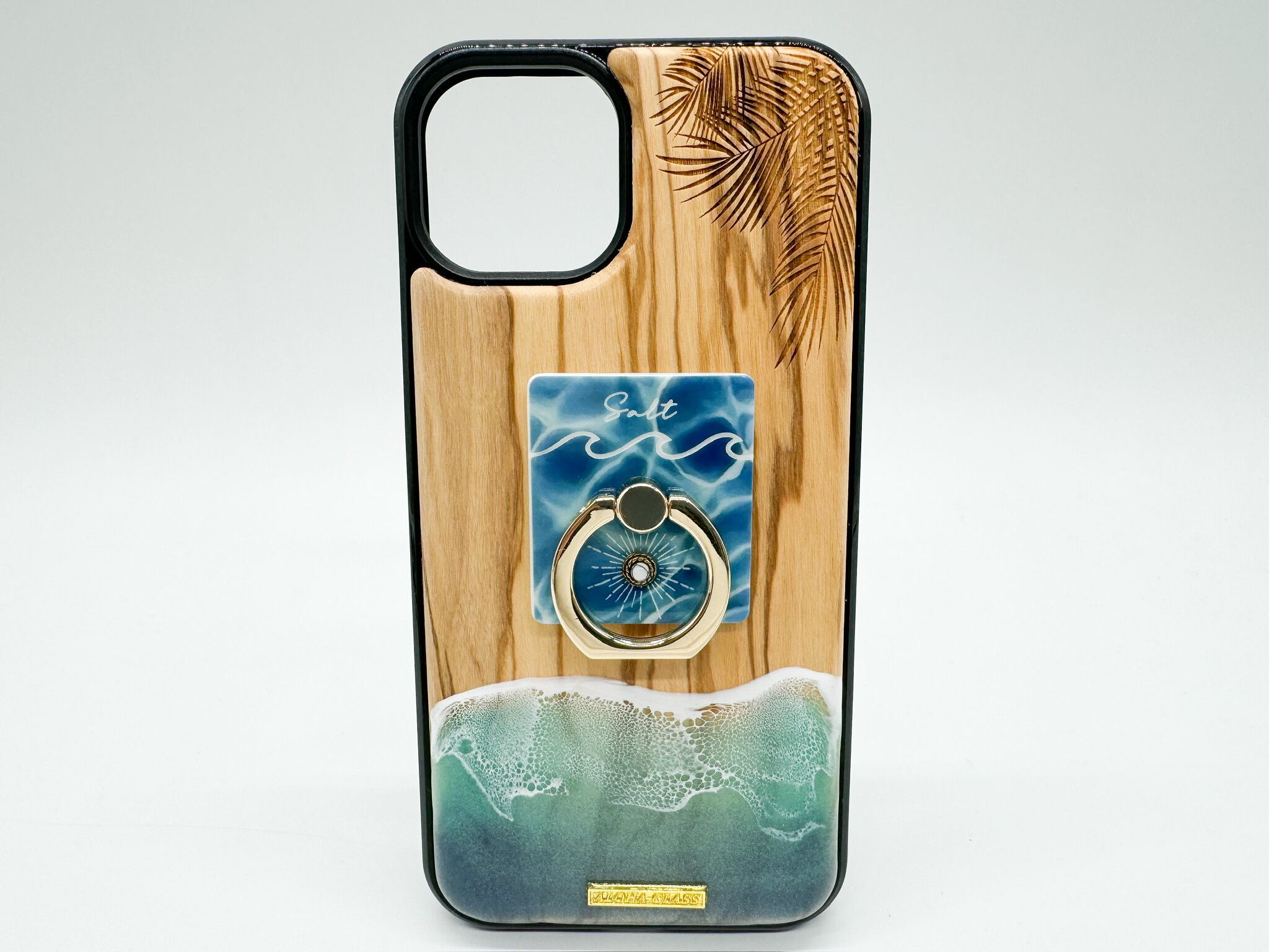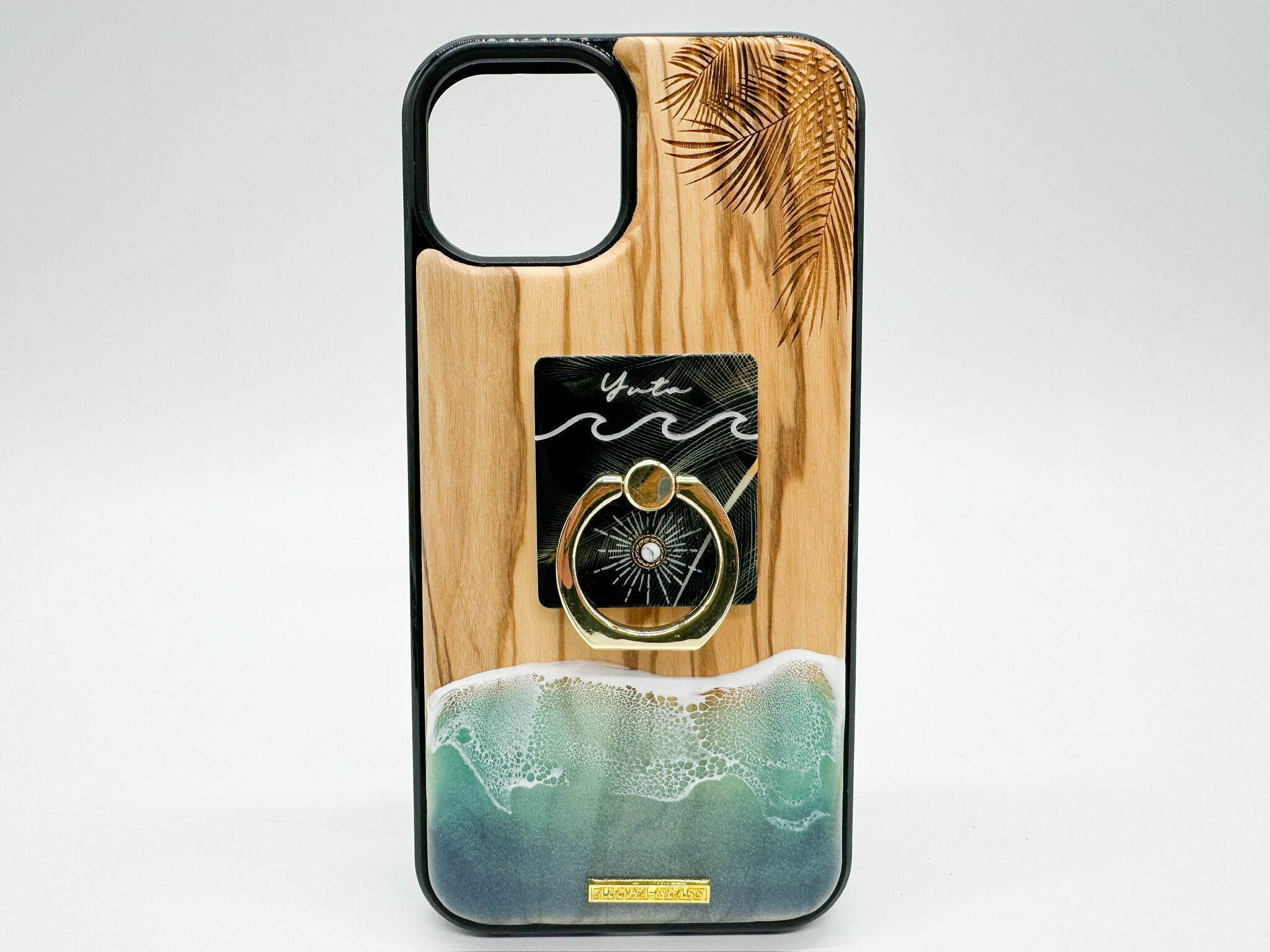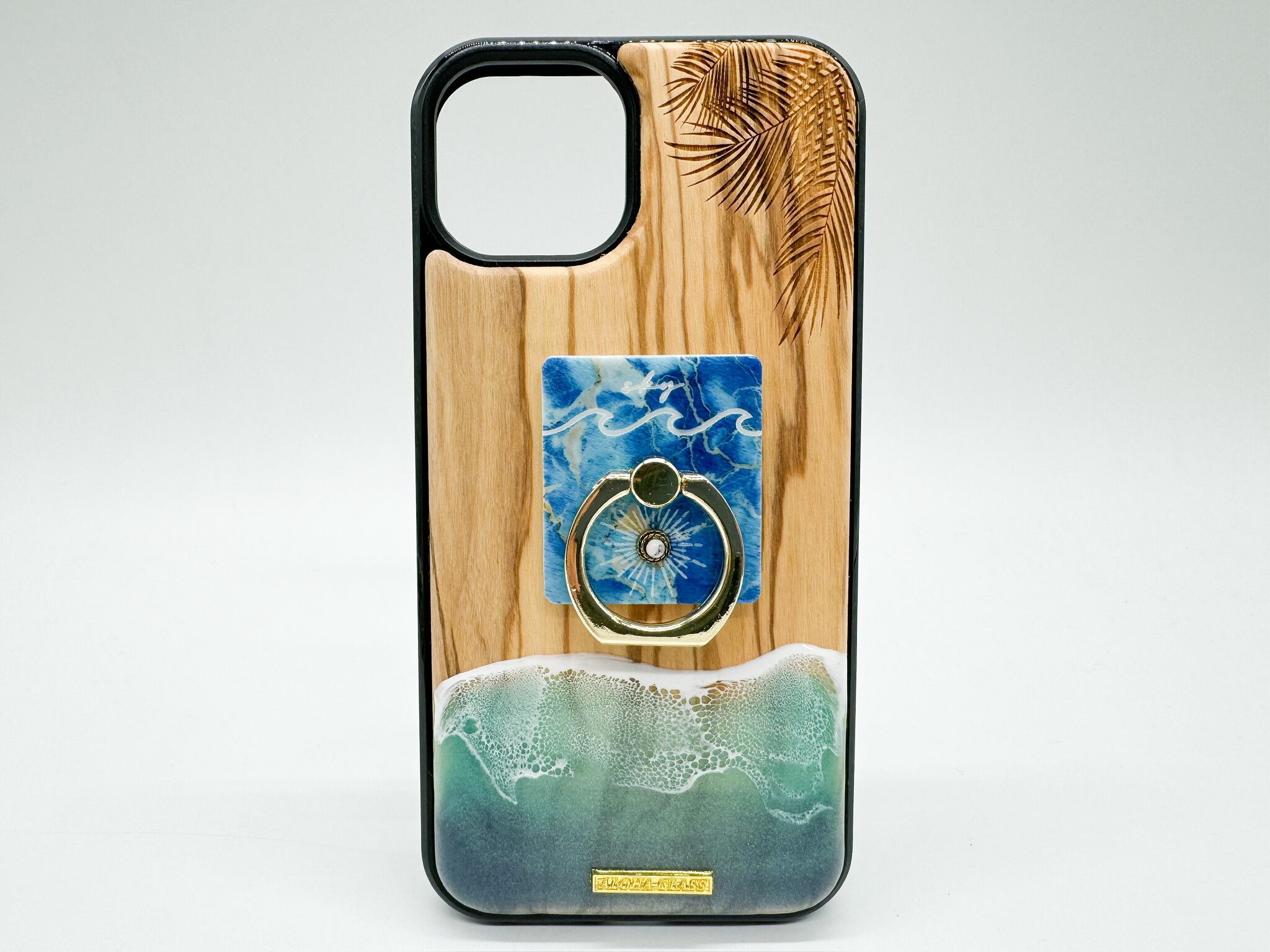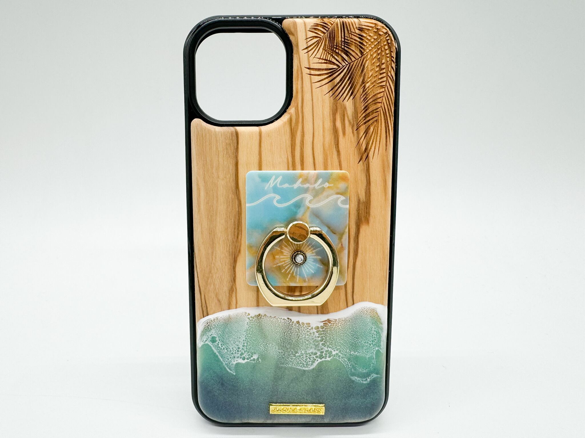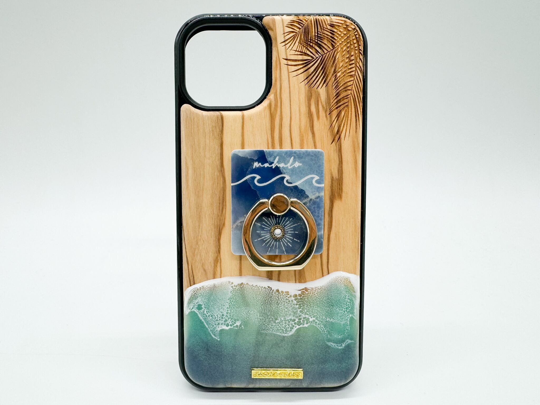 天然木製なのはもちろんのこと波のレジン加工も全て手作業で行い、オリジナルのリングを付けることでALOHA GLASSしか作れない、絶対に誰とも被ることのないあなただけのケースです。