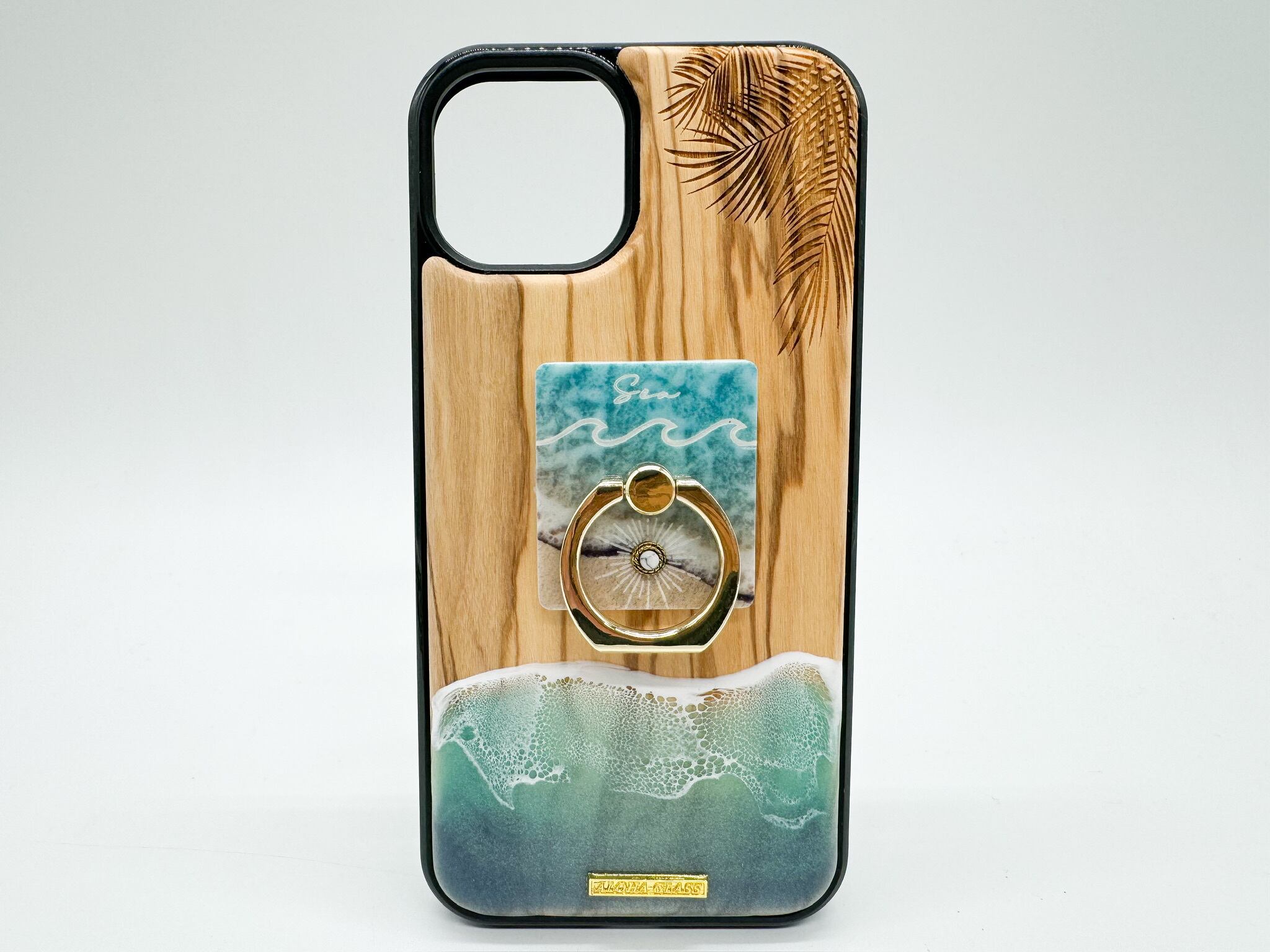 Beach side/wood×resin smoky blue wave case(olive wood)