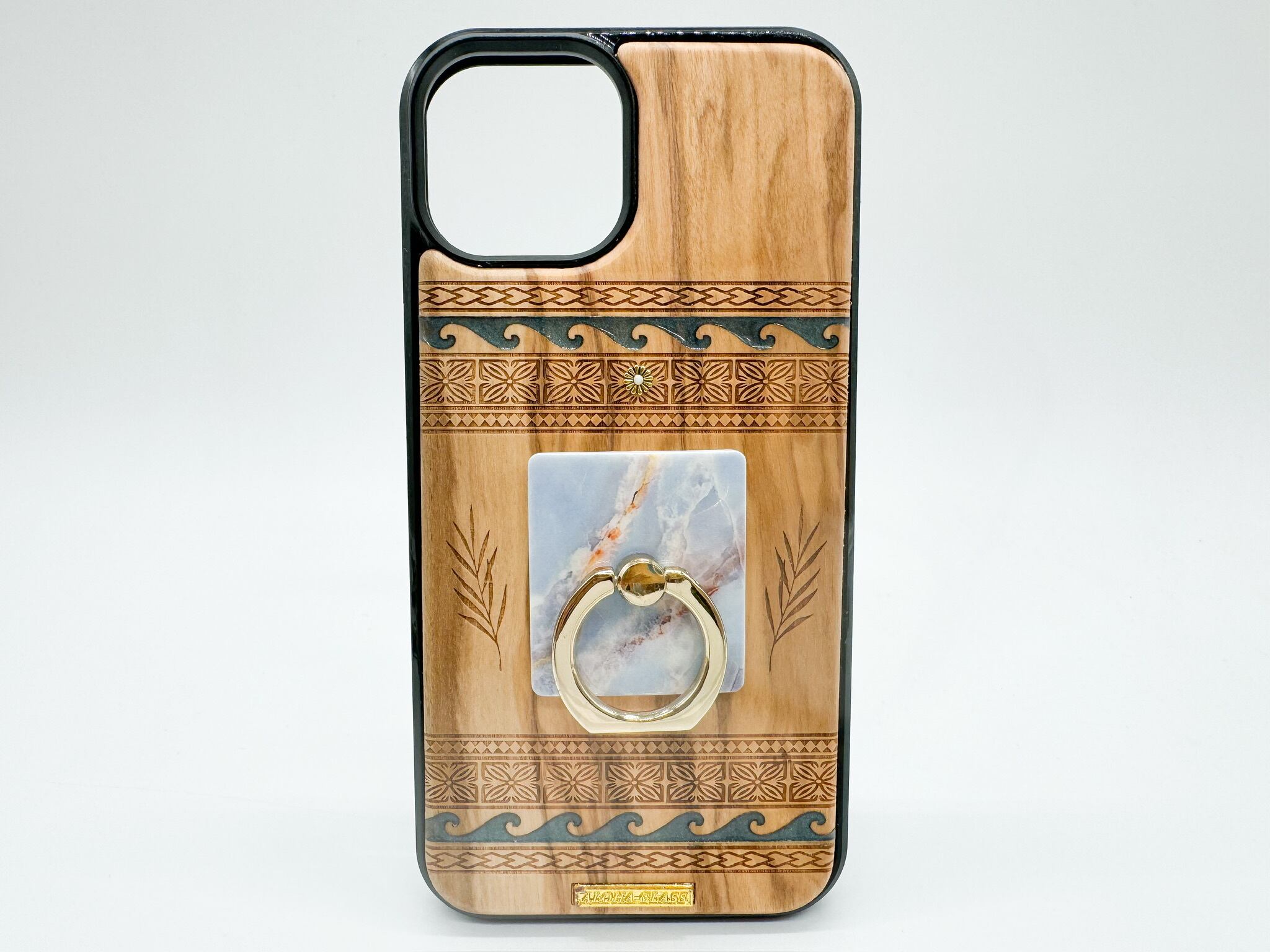 天然木製なのはもちろんのこと波のレジン加工も全て手作業で行い、オリジナルのリングを付けることでALOHA GLASSしか作れない、絶対に誰とも被ることのないあなただけのケースです。
