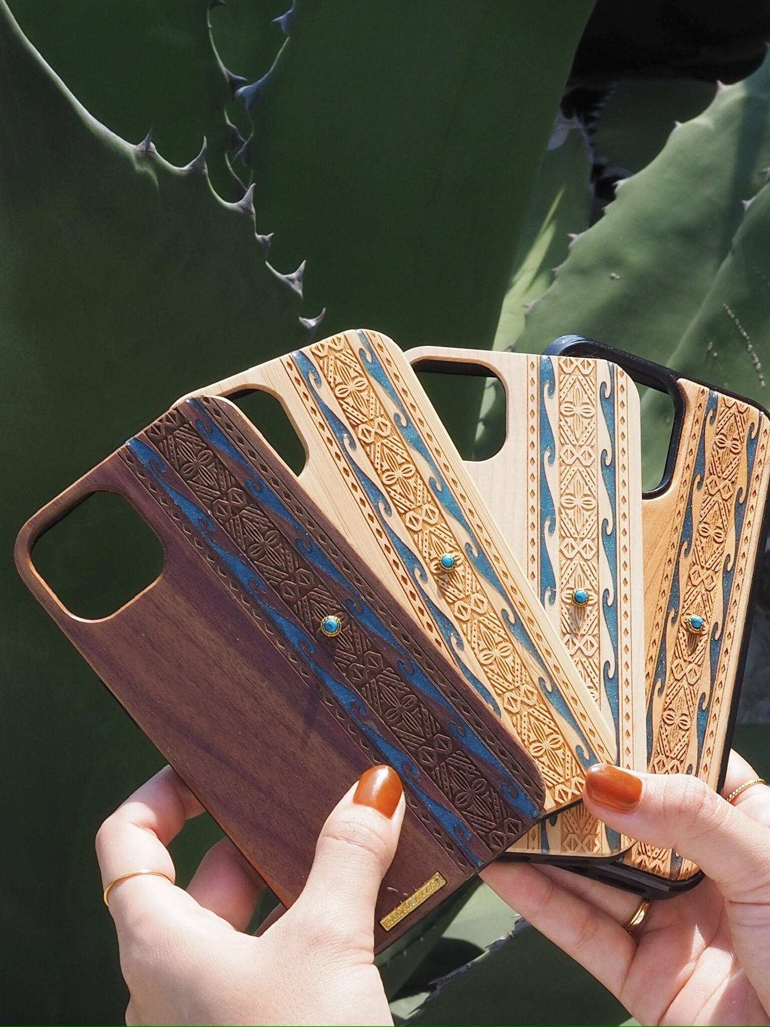 天然木製なのはもちろんのこと波のレジン加工も全て手作業で行いALOHA GLASSしか作れない、絶対に誰とも被ることのないあなただけのケースです。