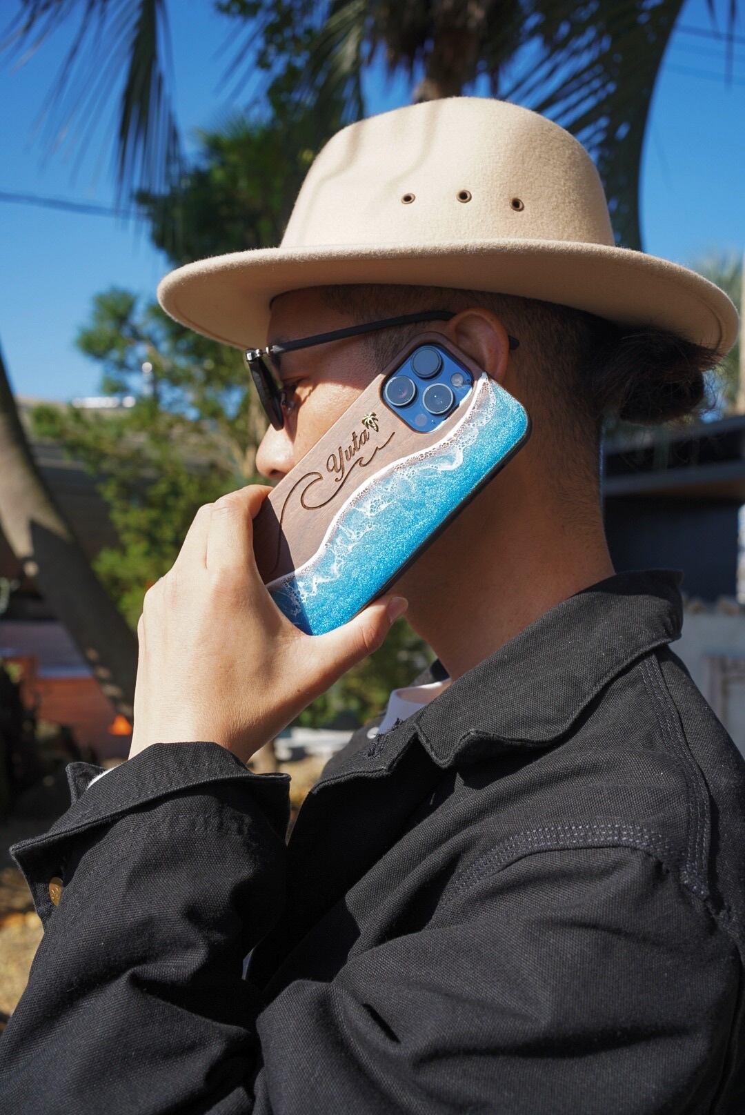 天然木製なのはもちろんのこと波のレジン加工も全て手作業で行うため同じ物が2度と生まれることはなく絶対に誰とも被ることのないあなただけのケースです。