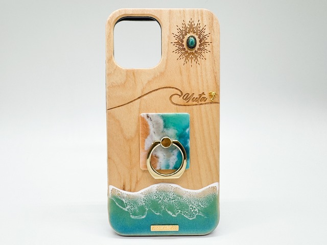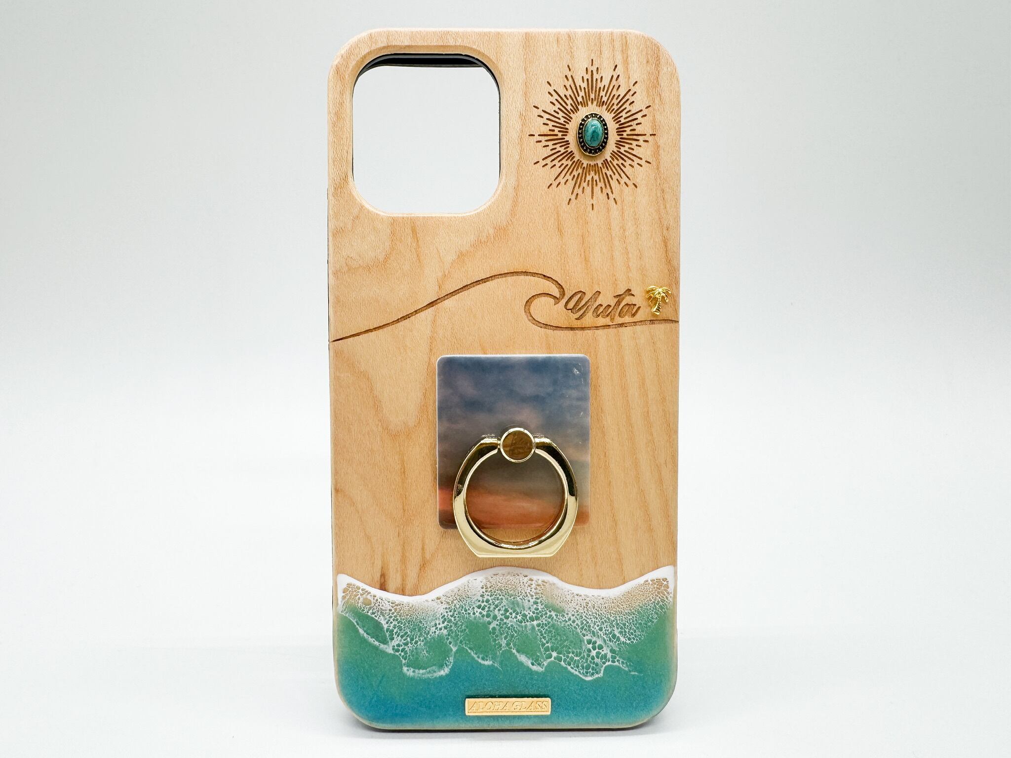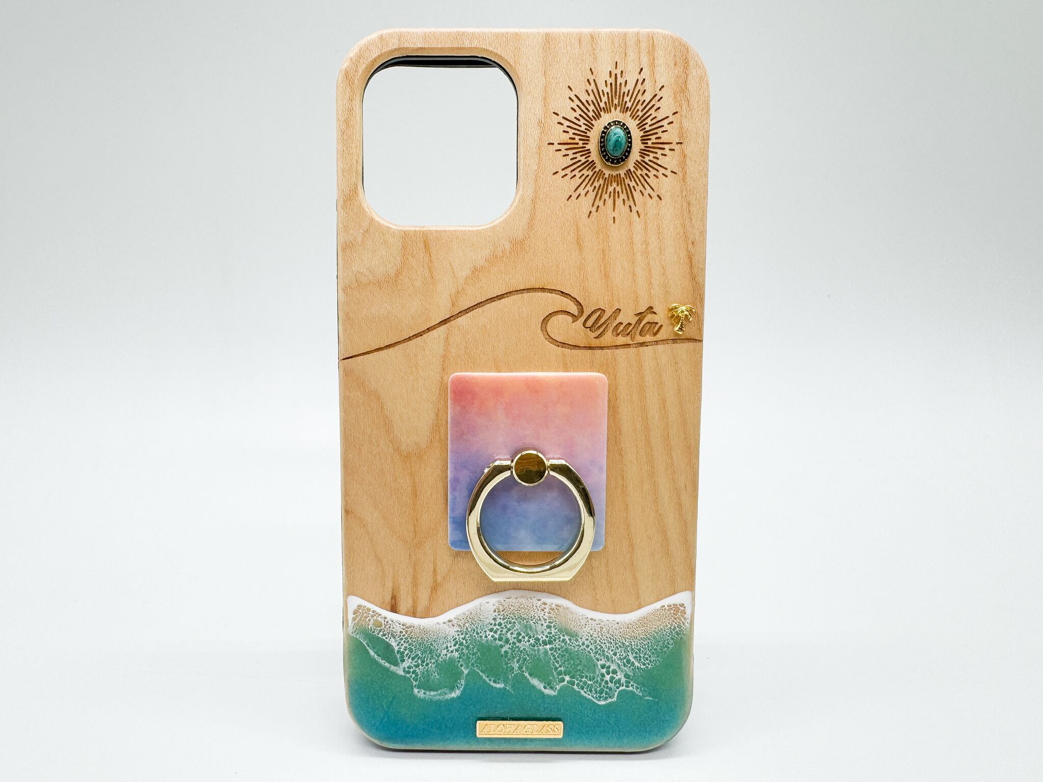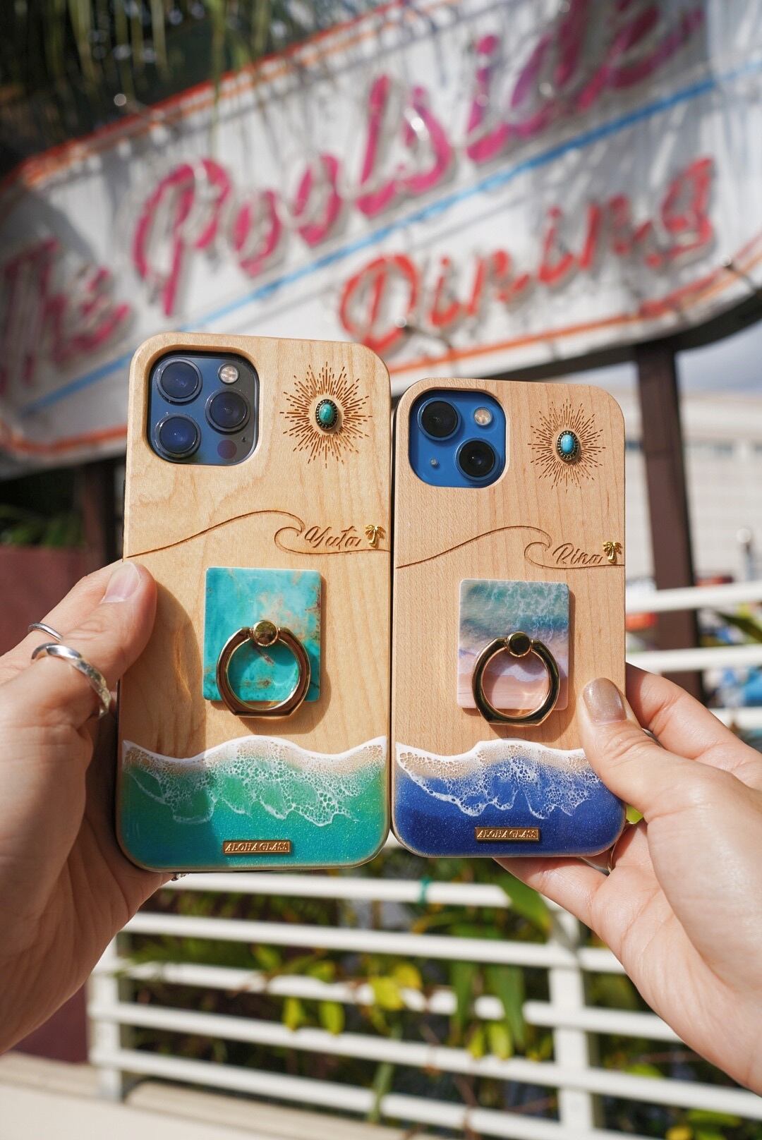 天然木製なのはもちろんのこと波のレジン加工も全て手作業で行い、オリジナルのリングを付けることでALOHA GLASSしか作れない、絶対に誰とも被ることのないあなただけのケースです。